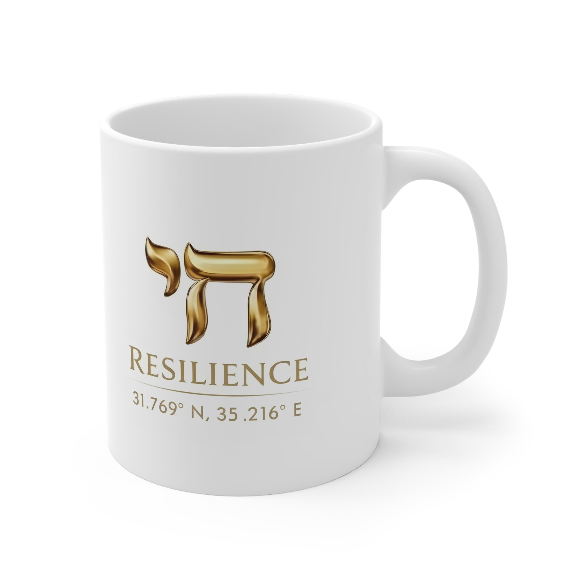 This Resilience Coffee Mug is more than a cup—it’s a daily reminder to stand firm, rise stronger, and keep going. Featuring the powerful Chai symbol, meaning life, paired with the word Resilience and meaningful coordinates, this mug speaks to courage, endurance, and unwavering spirit.