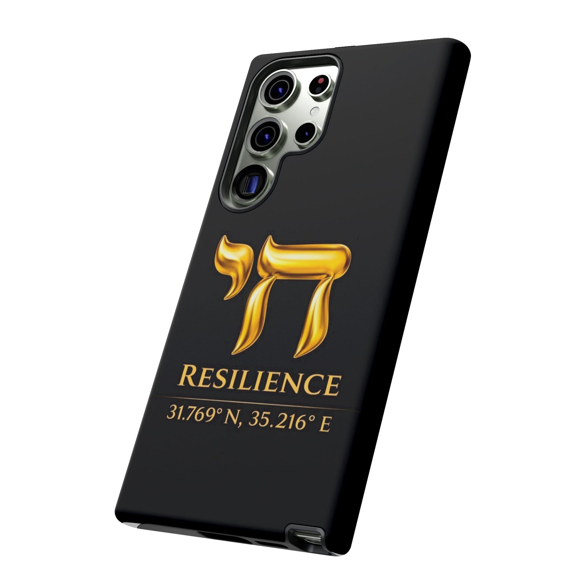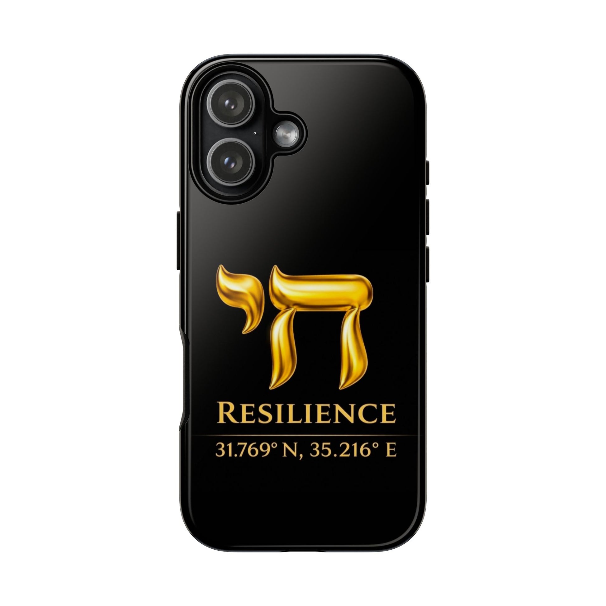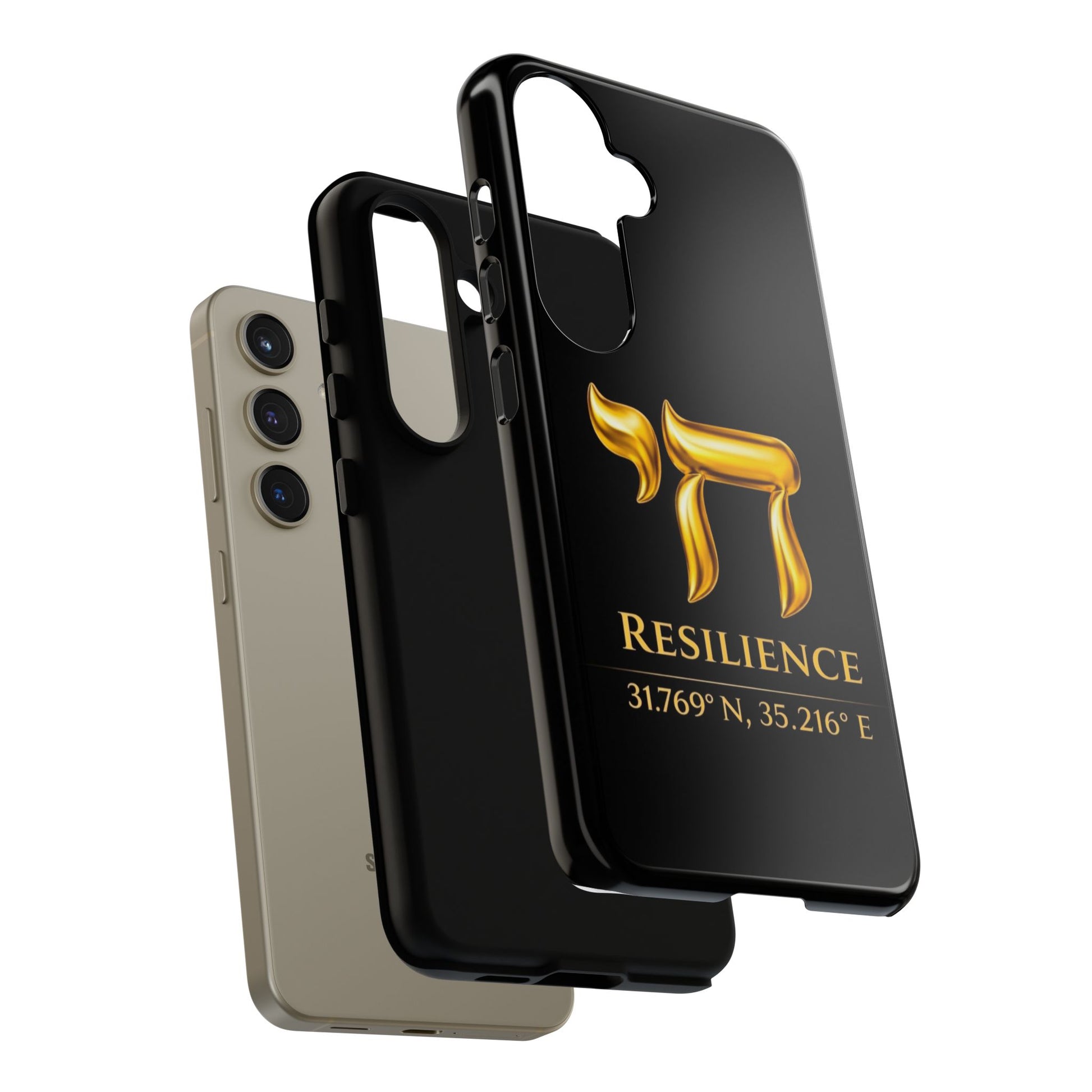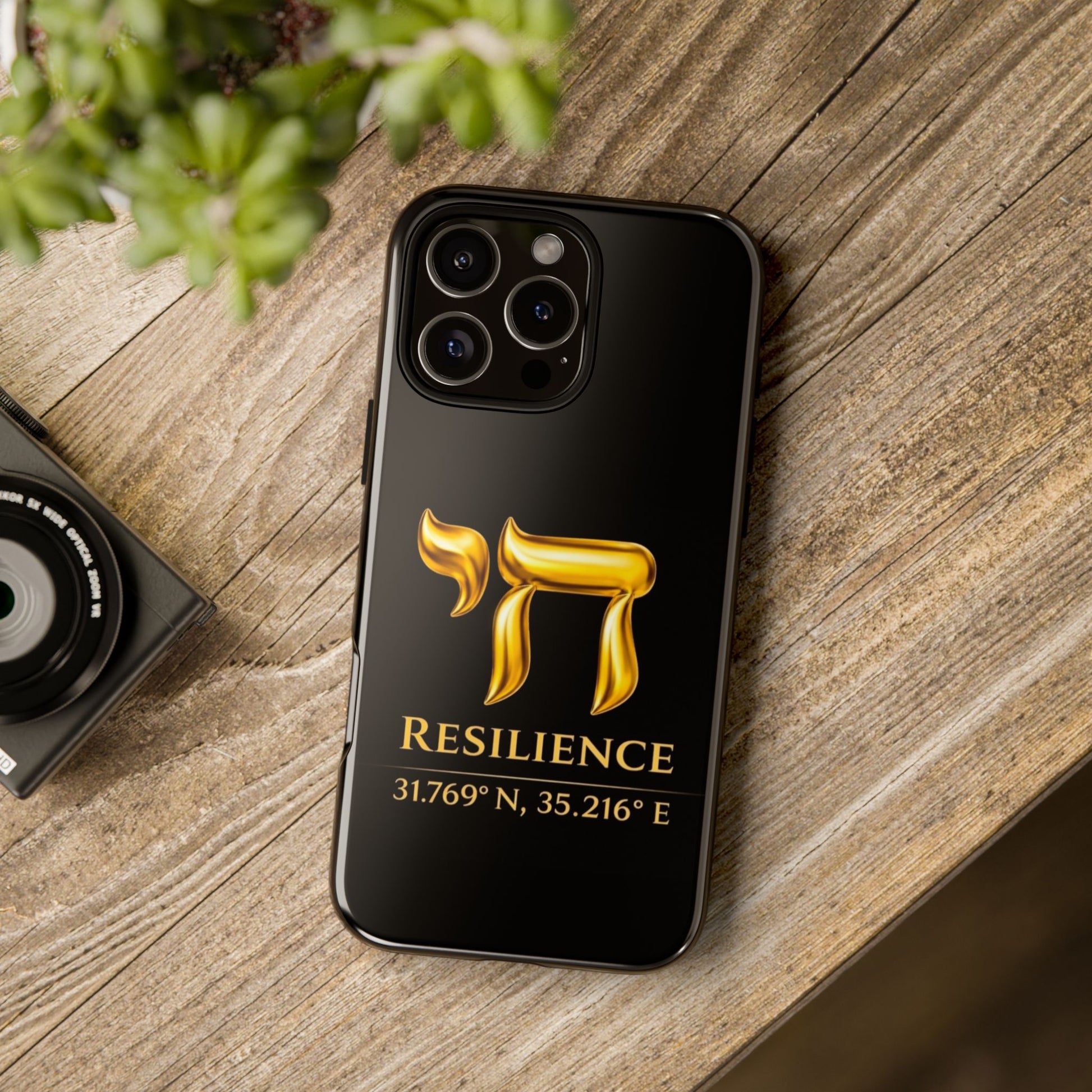 The Resilience Premium Black Edition Phone Case is designed for those who carry strength with them every day. Featuring the powerful gold Chai symbol—meaning life—paired with Resilience and meaningful coordinates, this case transforms protection into a bold statement of identity and endurance.
