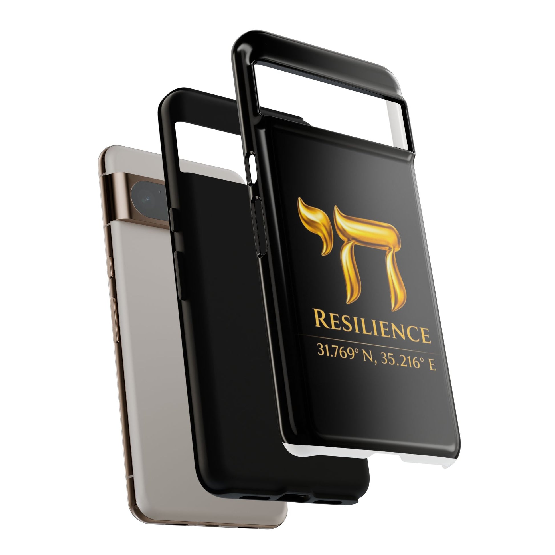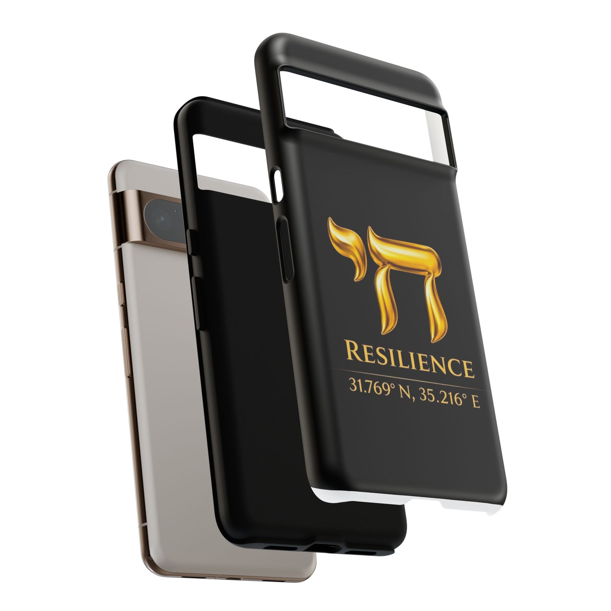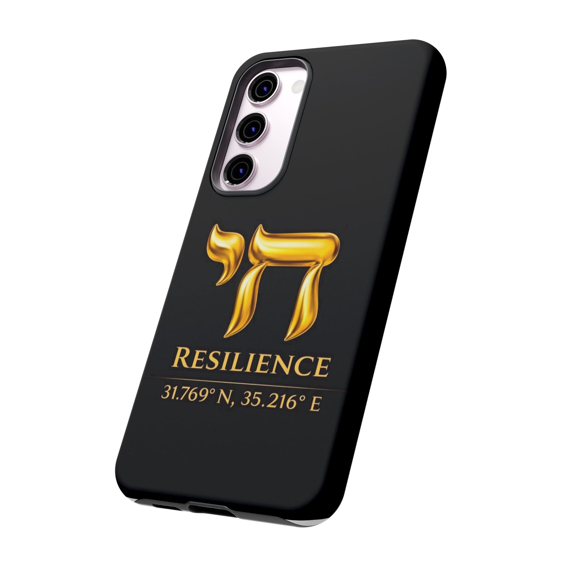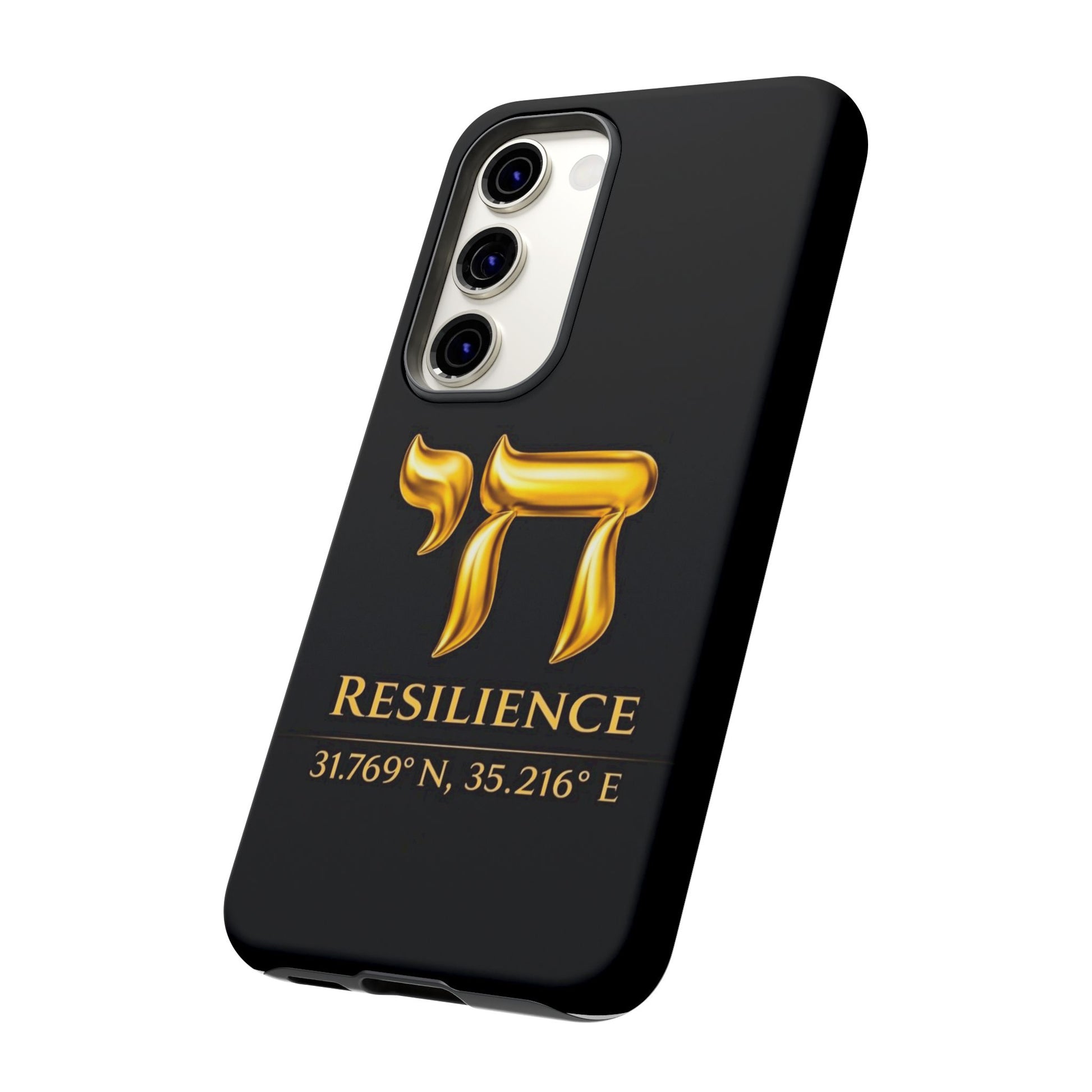 The Resilience Premium Black Edition Phone Case is designed for those who carry strength with them every day. Featuring the powerful gold Chai symbol—meaning life—paired with Resilience and meaningful coordinates, this case transforms protection into a bold statement of identity and endurance.