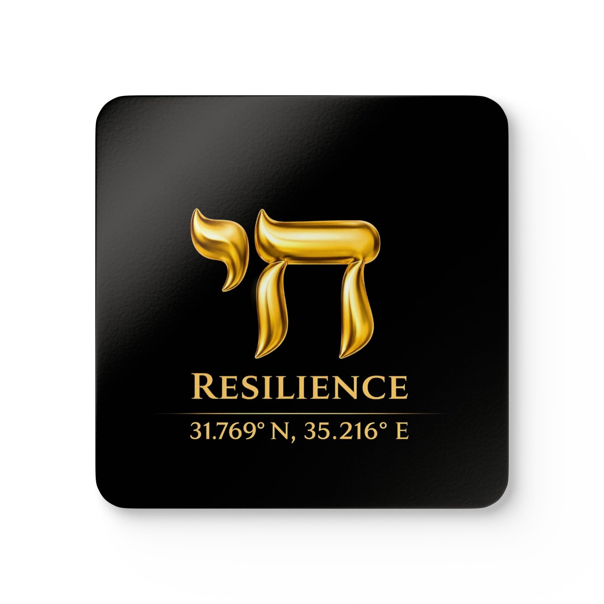 True resilience isn't just about surviving the light; it’s about thriving in the dark. The Black Edition Resilience Coaster set is a sophisticated statement piece for the modern home. Against a deep, obsidian surface, the sacred Chai symbol and your location coordinates are rendered in high-definition contrast, serving as a powerful anchor for your daily rituals.