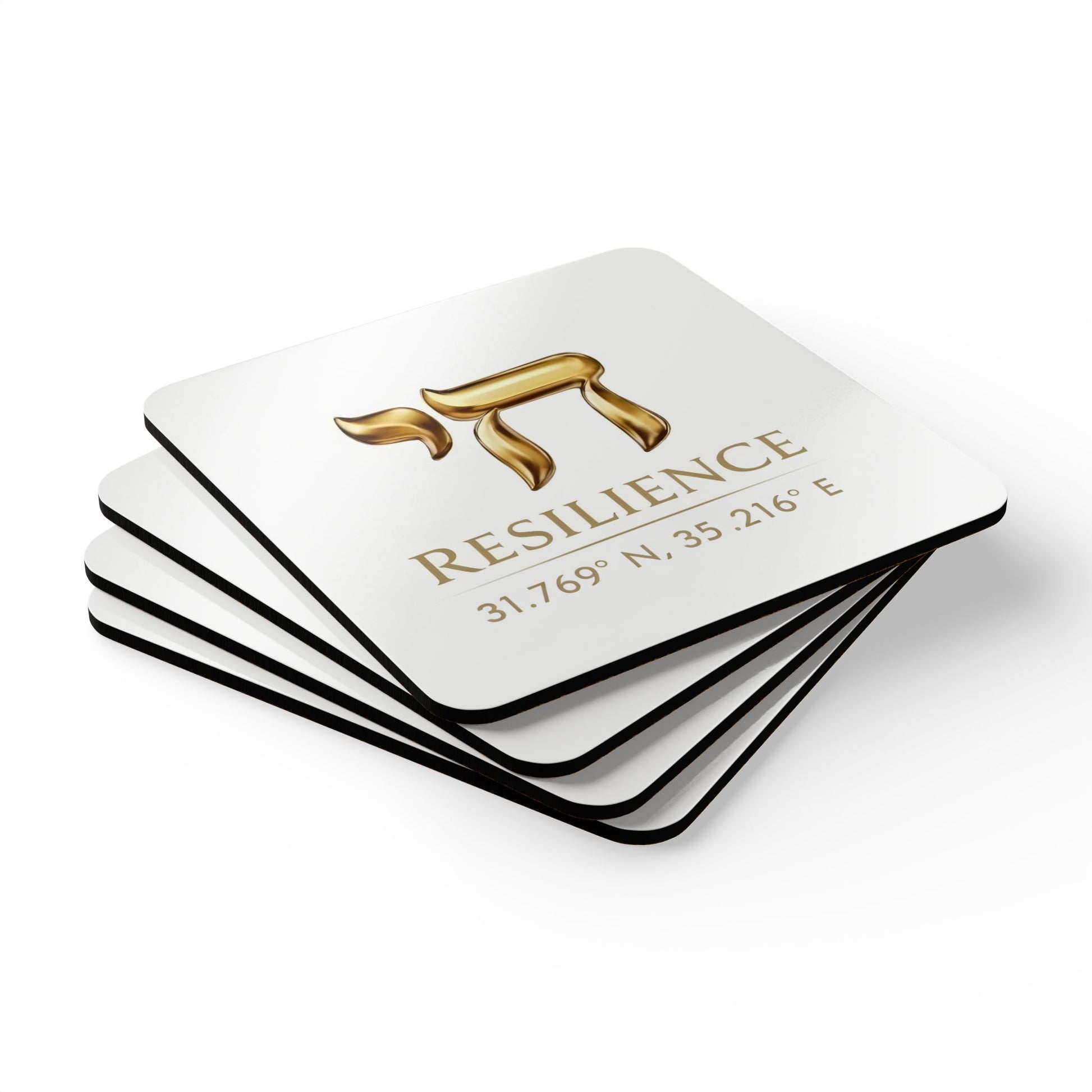 The White Resilience Coaster is more than a foundation for your drink—it is a tribute to life itself. Centered by the sacred Chai symbol—representing the pulse of existence—and anchored by precise location coordinates, this set is a celebration of where you have been and the strength you carry forward. Against a clean, gallery-white finish, these details stand out with breathtaking clarity.